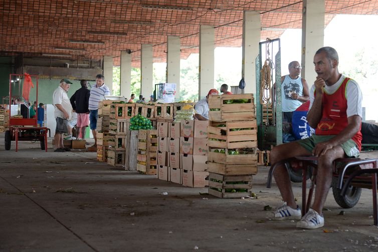 No Pavilhão 21, onde produtores locais vendem hortaliças, boxes estão vazios, carregadores conversam ociosos e comerciantes oferecem principalmente produtos que foram entregues em dias anteriores.