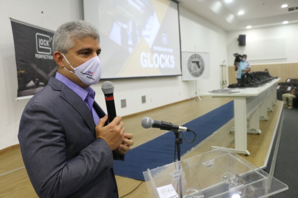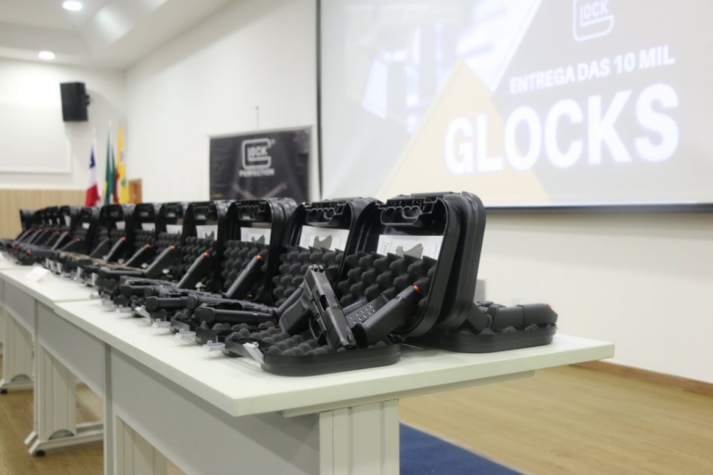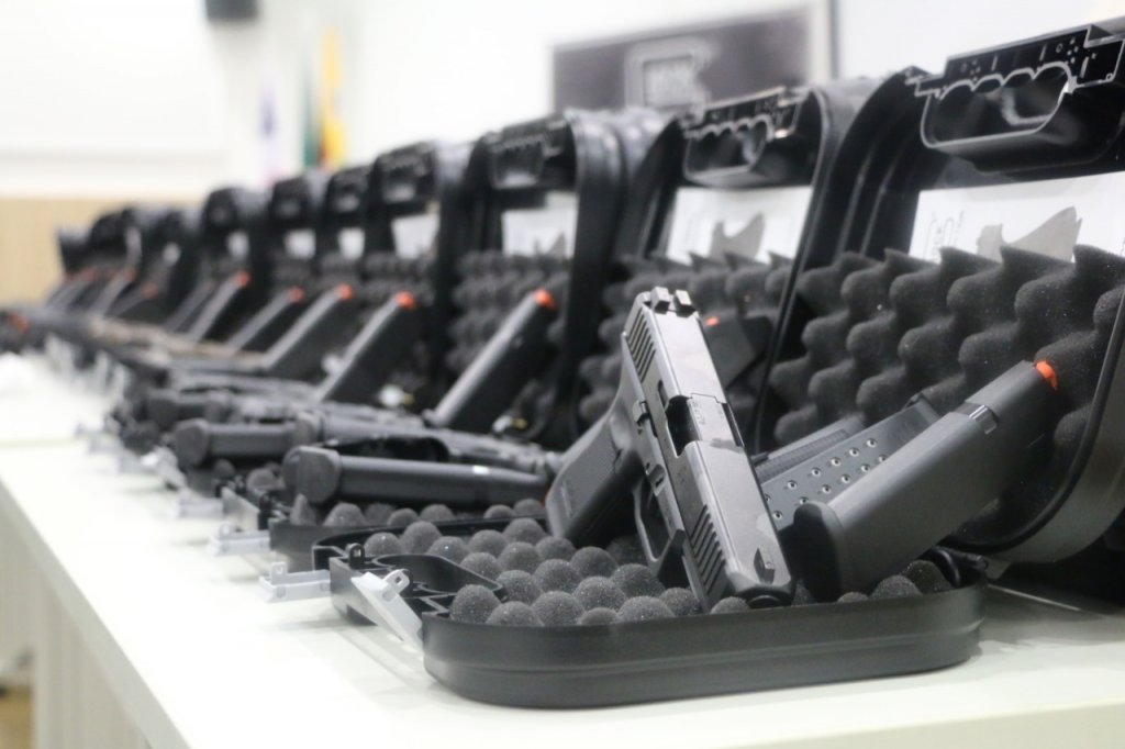 Policiais militares, civis e técnicos, além dos bombeiros militares receberam nesta quinta-feira (7) mais de 10 mil pistolas da marca Glock, modelo 22, Geração 5, calibre 40, fabricadas na Áustria, adquiridas pela Secretária da Segurança Pública (SSP). A entrega aconteceu em cerimônia realizada no Centro de Operações e Inteligência – 2 de Julho, no CAB. O armamento, considerado o mais moderno do mundo e usado pelas principais forças de segurança, entre elas o FBI norte-americano, será distribuído para as unidades operacionais na capital, RMS e interior.