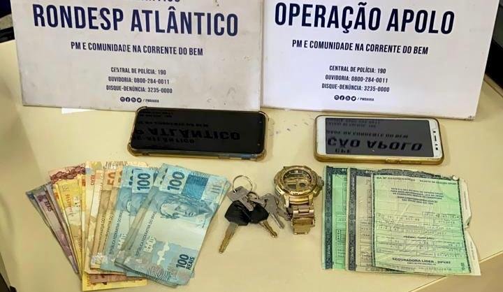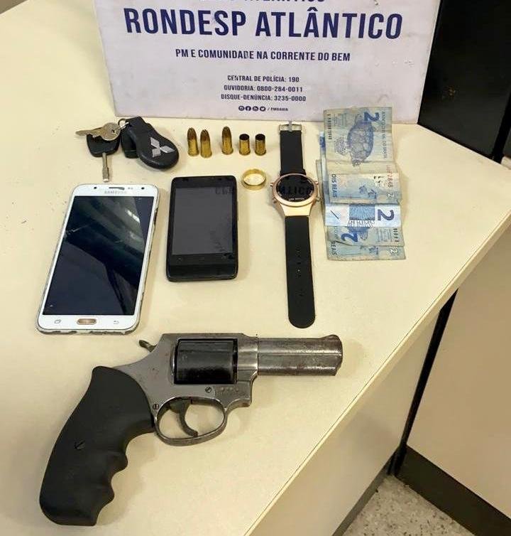 Com eles foram apreendidos um revólver calibre 38, munições, um automóvel modelo Focus, celulares e uma aliança. "Conversamos com eles e descobrimos que entregariam o veículo, se conseguissem efetuar o roubo, a outro comparsa, perto de um mercado em Paripe", contou o comandante da Rondesp Atlântico, major Edmundo Assemany Júnior.