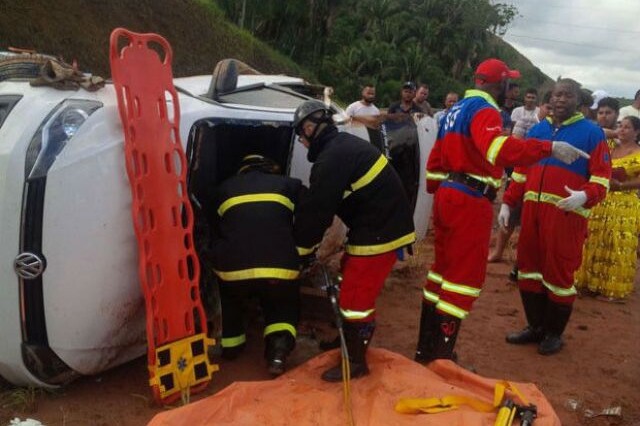 Carro capota na Avenida Luís Eduardo Magalhães