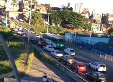 Um engavetamento entre uma carreta e três carros eixa o trânsito lento na BR-324, sentido Salvador, na manhã desta quarta-feira (5).
