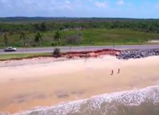 Parte do asfalto da BR-367, entre Porto Seguro e Santa Cruz Cabrália, no sul da Bahia, onde fica a praia de Ponta Grande, está cedendo por causa da erosão provocada pelo avanço do mar. A situação ocorre desde o ano passado e ainda não foi solucionada.