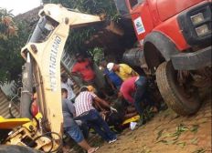O motorista tentou parar a caçamba, mas o sistema de frenagem não funcionou. Por se tratar de um local elevado, o veículo desceu de ré atropelou os trabalhadores. A caçamba só parou quando atingiu uma árvore.