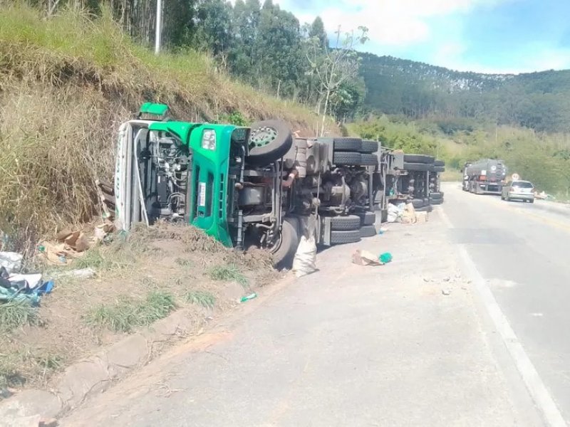 Um caminhão tombou no último domingo (12), na BR-101, em Itagimirim, no sul da Bahia. Segundo a Polícia Rodoviária Federal (PRF), o motorista, que perdeu o controle da direção do veículo, ficou ferido.