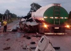 Ainda de acordo com a PRF, o motorista da caminhonete, que não teve a identidade divulgada, não conseguiu frear e foi imprensado entre as carretas. Uma delas estava na frente da caminhonete, enquanto a outra vinha no sentido contrário.