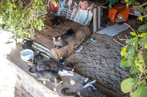 Na orla de Piatã, em Salvador, a cena chama a atenção de quem passa. Inúmeros gatos abandonados passeiam pela grama e calçada, próximo à ciclovia e à pista de carros. Se misturando ao mato que cerca a areia da praia, casinhas, gaiolas, caixas de sapato, proteção contra a chuva, brinquedos, potes de ração e de água. Essa é a colônia de gatos de Piatã, mantida por moradores da região e protetores dos animais, que pedem socorro ao poder público. Segundo eles, o local já conta com cerca de 200 gatos.
