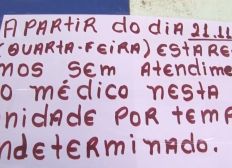 Quem foi até o posto na manhã desta quarta-feira (21) teve que voltar para casa sem ser atendido. Do lado da porta da unidade de saúde, um cartaz foi colocado com a seguinte mensagem: "A partir de hoje, não terá mais atendimento médico e isso é por tempo indeterminado".