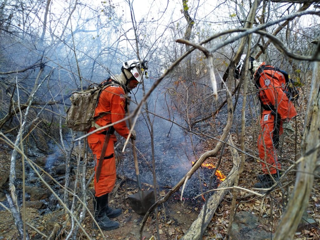 Desde a madrugada desta sexta-feira (20), equipes especializadas em combate a incêndios florestais do Corpo de Bombeiros Militar da Bahia atuam em conjunto com bombeiros militares do 17º grupamento na queimada que atinge a Serra do Mimo, em Barreiras.