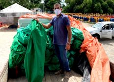 O Governo do Estado enviou, neste domingo (03), 100 barracas, 1.200 máscaras reutilizáveis e 100 frascos de álcool em gel a 70% para serem distribuídos aos feirantes da Central de Abastecimento de Ilhéus, que teve abertura autorizada após os ajustes determinados pela Vigilância Sanitária do Estado. A ação tem como objetivo ofertar mais segurança para o funcionamento do local, em virtude da pandemia do novo Coronavírus.