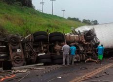 Segundo a PRF, o caminhão trafegava na via, quando um dos pneus estorou, na altura do KM-397, fazendo o veículo capotar.