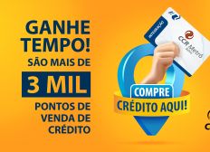 A CCR Metrô Bahia passa a oferecer mais uma facilidade para os clientes do Sistema Metroviário de Salvador e Lauro de Freitas. A partir desta segunda-feira, 27, será possível comprar os créditos para os Cartões de Integração do Metrô em uma rede credenciada com mais de 3.000 pontos de vendas. São pontos comerciais como lojas, restaurantes, farmácias, entre outros, distribuídos por Salvador e Região Metropolitana. Para encontrar o ponto mais próximo para a recarga, basta acessar o site www.rvgo.com.br pelo computador ou smartphone que ele vai indicar os locais mais próximos para a compra dos créditos, além da rota de como chegar. A identificação da RVGO é a garantia de que o estabelecimento é parceiro e realiza a venda de créditos.