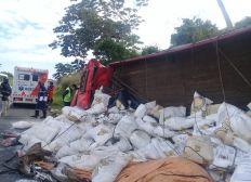 Conforme a ViaBahia, concessionária que administra a rodovia, o acidente ocorreu no Km-596, sentido Feira de Santana, cidade a cerca de 100 quilômetros da capital baiana, por volta das 8h. Após o veículo tombar, parte da carga ficou espalhada na pista.