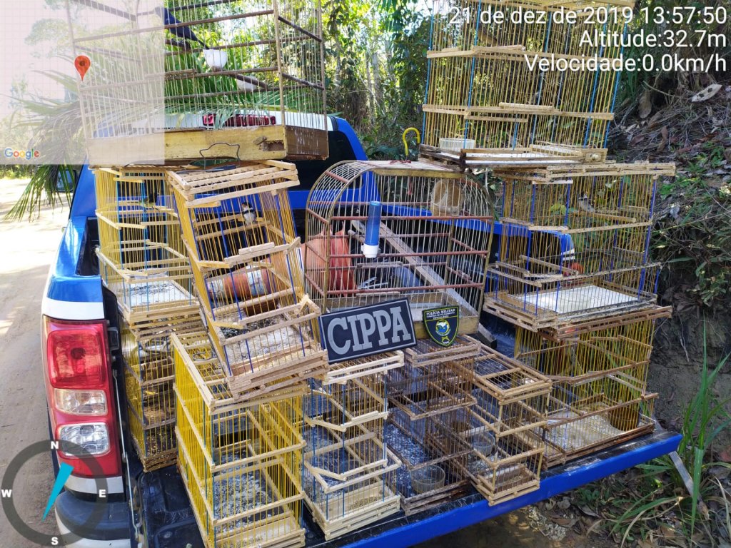 Doze pássaros de diferentes espécies foram devolvidos à natureza por guarnições da Companhia Independente de Polícia Ambiental (Cippa) de Porto Seguro, depois de serem encontrados dentro de gaiolas em residências, no município de Una.