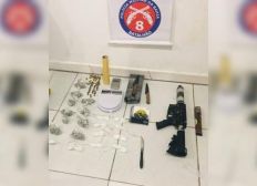 Quinze pessoas foram conduzidas e uma submetralhadora apreendida, no início da manhã desta quarta-feira (20), por equipes do 8º do Batalhão de Polícia Militar (BPM), no bairro Baianão, em Porto Seguro. O flagrante aconteceu enquanto os policiais checavam uma denúncia de som alto e aglomeração. Uma submetralhadora artesanal, 30 munições para calibre 380, um quilo de maconha prensada, 285 porções da droga prontas para a venda, 131 papelotes de cocaína, uma balança, 500 embalagens vazias, um rolo de filme plástico, um caderno com anotações do comércio ilegal e três facas foram apreendidos m uma área ao lado do imóvel.