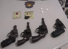 Com o quarteto foram apreendidos quatro revólveres calibres 38 e 32, munições, porções de cocaína e o veículo modelo Logan, placa OZJ-8792.