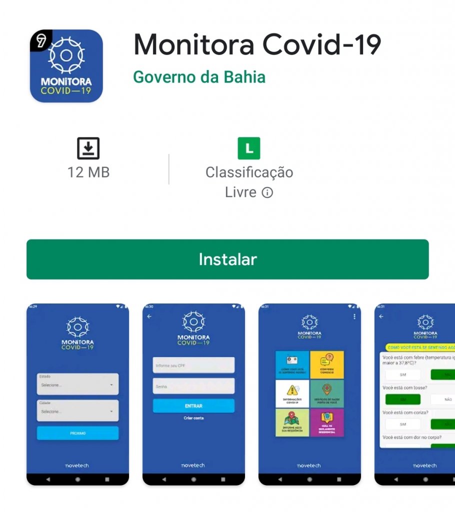 O governador Rui Costa utilizou as redes sociais para anunciar, na manhã desta quinta-feira (9), o aplicativo “Monitora”, que possibilitará o registro de informações de pessoas com suspeita da Covid-19, viabilizando o atendimento remoto, monitoramento e acompanhamento dos cidadãos. O app já está disponível gratuitamente na plataforma android, sendo, posteriormente, disponibilizado para iOS. Para localizá-lo, é preciso fazer a busca digitando “monitoracorona”, com as duas palavras juntas, e fazer a seleção do aplicativo “Monitora Covid-19”, de cor azul, de autoria do “Governo da Bahia”, ou acessar diretamente este link: https://bit.ly/2UYHR9L.