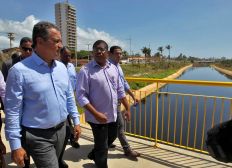 Na manhã desta segunda-feira (19), o governador Rui Costa esteve nas obras de macrodrenagem para canalização e revestimento na calha do rio Jaguaribe e Mangabeira. A obra realizada no trecho da orla de Salvador conta com investimento superior a R$ 273 milhões e já foi parcialmente concluída, com entrega de duas passarelas e obras de paisagismo.