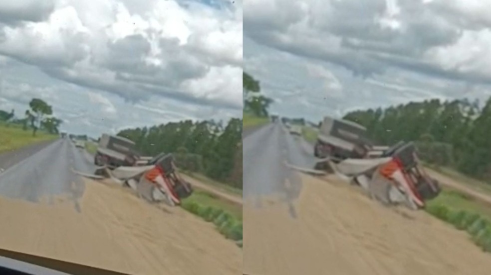O acidente ocorreu nas imediações do Posto Robison Nunes e causou a interdição da rodovia nos dois sentidos. Imagens que circulam nas redes sociais mostram a carga do veículo espalhada na pista.