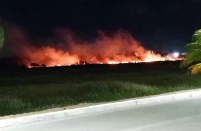Um incêndio em uma área de vegetação assustou moradores e turistas em Arembepe, no município de Camaçari, na Região Metropolitana de Salvador. A ocorrência foi registrada na noite deste sábado (7).