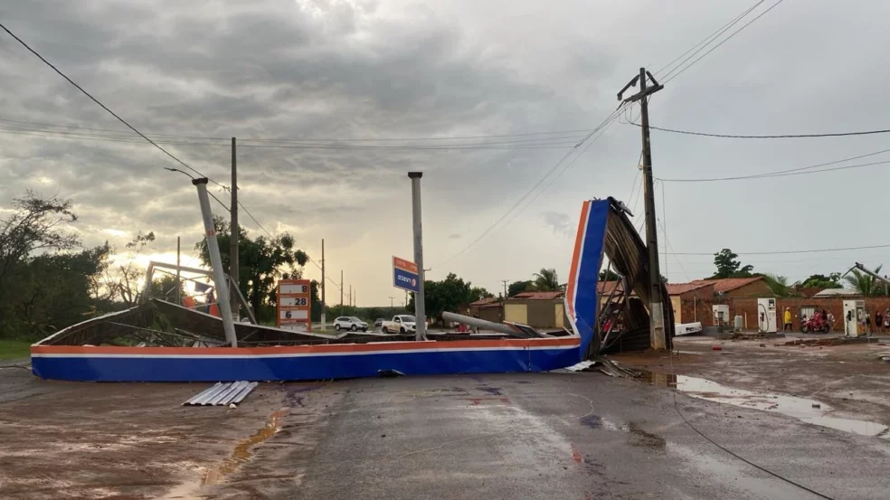 Um vídeo feito por moradores mostra um poste de combustível completamente destruído. Os ventos fortes arrancaram as bombas do concreto. Além disso, levaram o teto do estabelecimento. O temporal na cidade ainda derrubou muros de casas.