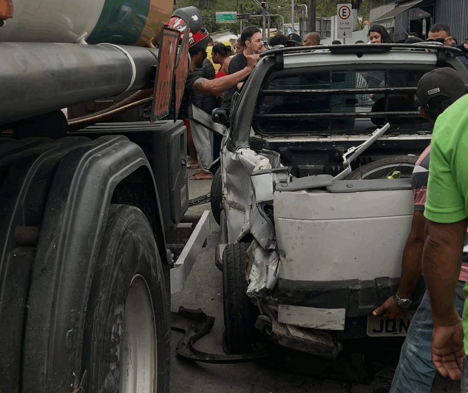 VÍDEO: Viatura da PM e mais 9 veículos são atingidos por caminhão-tanque em Nazaré