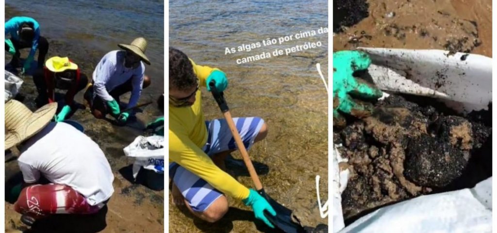 Um mutirão do grupo de voluntários "Guardiões do Litoral" retirou manchas de óleo da praia de Itacimirim, litoral norte da Bahia, ontem (1º).