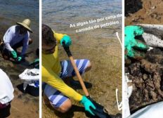 Um mutirão do grupo de voluntários "Guardiões do Litoral" retirou manchas de óleo da praia de Itacimirim, litoral norte da Bahia, ontem (1º).