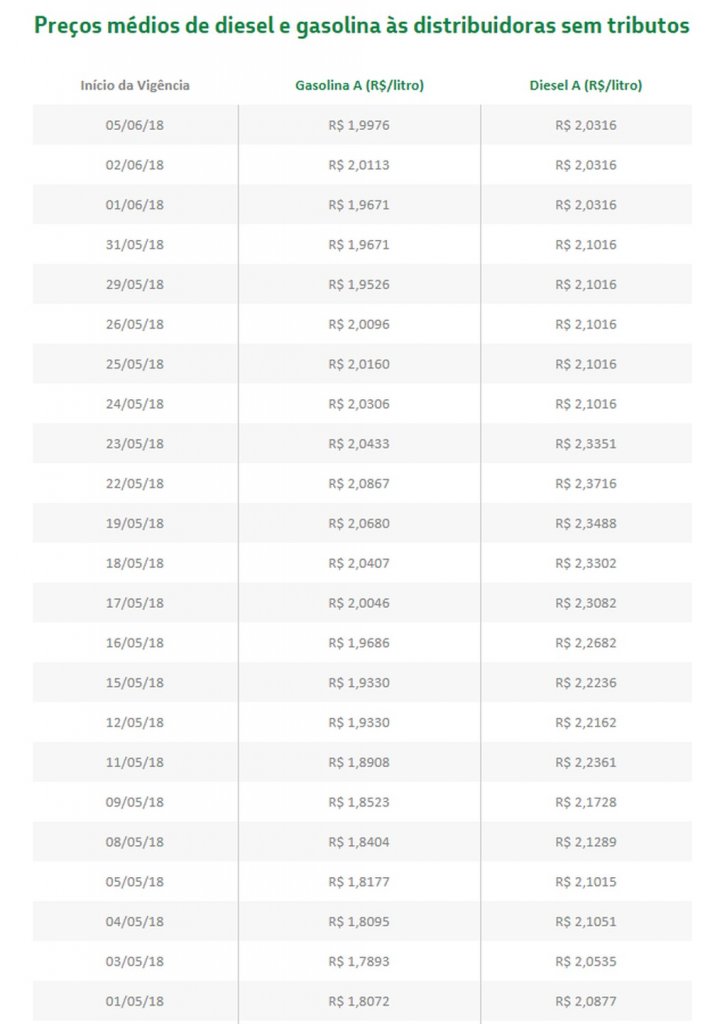 Desde o início de maio, já foram anunciadas 14 altas e 7 quedas no preço da gasolina. Em 1 mês, o combustível acumula alta de 11,64% nas refinarias. Veja tabela abaixo: