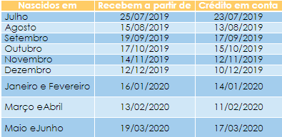 Os titulares de conta individual na CAIXA com cadastro atualizado e movimentação na conta recebem,  hoje (10), o crédito automático antecipado. Os pagamentos são escalonados conforme o mês de nascimento do trabalhador e tiveram início em julho, com os nascidos naquele mês. O prazo final para o saque do abono salarial do calendário de pagamentos 2019/2020 é 30 de junho de 2020.