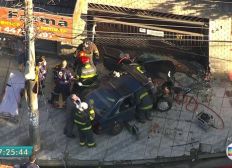 No local, equipes do Serviço de Atendimento Móvel de Urgência (Samu) e do Corpo de Bombeiros trabalhavam no resgate das pessoas. O portão ficou destruído.