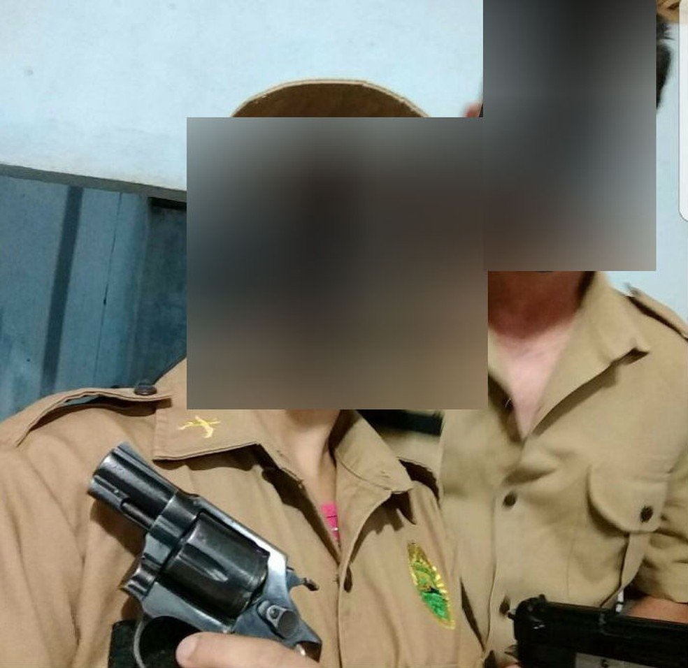 A Polícia Militar (PM) chegou à casa deles, na Rua São Leopoldo, por volta das 14h30. O suspeito confirmou à polícia que eram ele e a esposa, com um revólver e uma pistola, na foto postada.