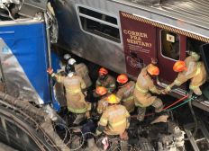 O choque foi tão violento que a locomotiva de um dos trens se soltou do chassi e ficou esmagada. Bombeiros tentavam desde as 7h15 abrir caminho entre esses destroços para soltar o condutor.
