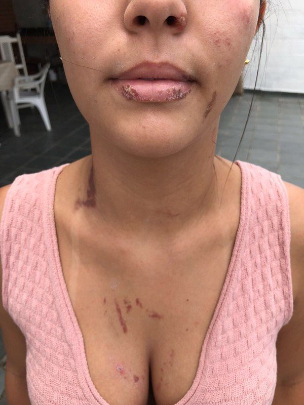 Várias pessoas foram atingidas pelo fogo. A namorada do dentista, porém, foi a mais afetada. Além do cabelo, que foi parcialmente carbonizado, ela perdeu as sobrancelhas e teve queimaduras em várias partes do corpo. Por conta da gravidade dos ferimentos, foi obrigada a passar a noite no hospital, em observação, recebendo cuidados. Um vídeo obtido pelo G1 flagrou o acidente.