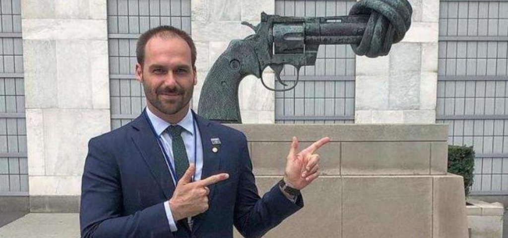 A indústria das armas reagiu à imagem que o deputado federal Eduardo Bolsonaro (PSL-SP) publicou nas redes sociais na última quinta-feira (26), fazendo um gesto de arma com as mãos, na frente de um monumento pela paz na sede da Organização das Nações Unidas (ONU), em Nova York, nos Estados Unidos.