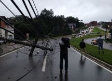 Em Gramado, também na Serra, o temporal provocou destelhamento de casas no bairro Piratini. O trânsito na estrada que liga Gramado a Canela foi interrompido após a queda de postos na rodovia.
