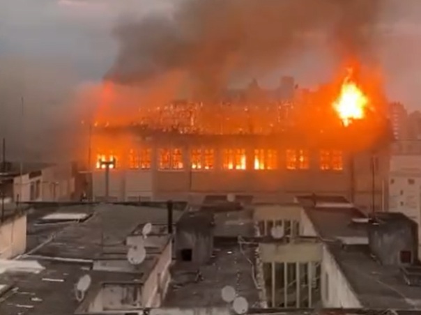 Imagens que circulam nas redes sociais mostram a intensidade das chamas no prédio. Equipes do Corpo de Bombeiros foram acionadas para conter as chamas.