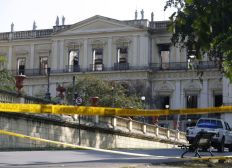 Construção de barreira nos arredores do Museu Nacional do Rio de Janeiro, após o incêndio. – Fernando Frazão/Agência Brasil
