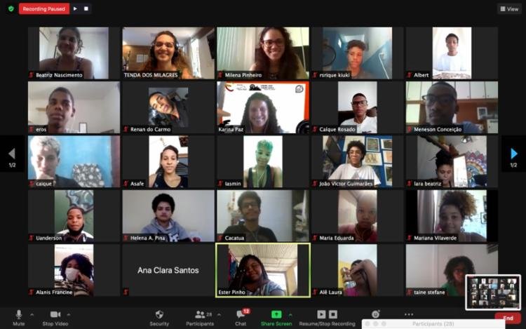 “Durante as aulas online, conhecemos e nos aproximamos das nossas alunas e alunos, uma turma linda, cheia de sonhos, expectativas e criatividade! Dentro do panorama atual, no qual os riscos em relação ao COVID-19 aumentaram, foi realizada uma análise sobre os riscos da situação. Colocamos o raciocínio e a criatividade em ação e, sem colocar ninguém em risco, os jovens estão filmando seus próprios roteiros tendo uma assessoria remota dos professores”, declarou a professora de produção e responsável pela produção executiva do projeto, Karina Paz.