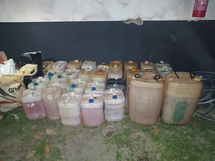 A operação foi iniciada após uma denúncia anônima informar sobre o armazenamento do produto em condições inadequadas no bairro Lomanto. No local, os policiais encontraram diversos galões com o suspeito.
