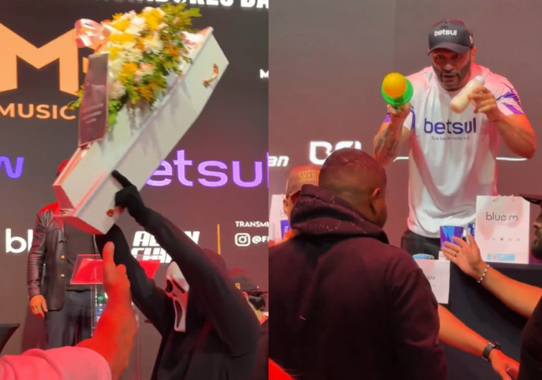 Durante a chegada ao evento, o campeão do BBB 24 apareceu fantasiado de Ghostface e levou um caixão com a foto de Bambam. Em resposta, o vencedor do BBB 1 também provocou e ofereceu uma mamadeira a Davi, chamando-o de criança.