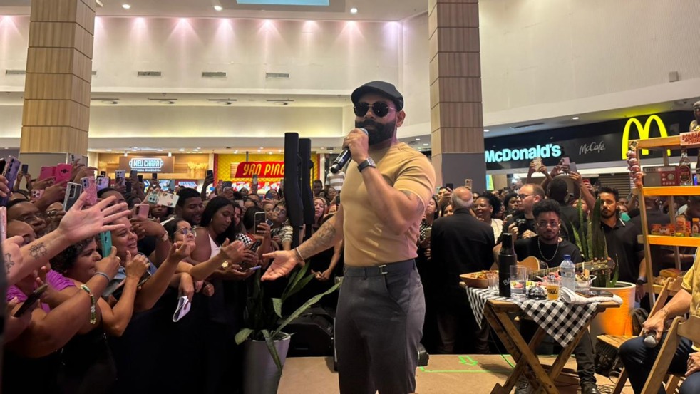 O cantor Pablo apresentou, nesta terça-feira (24), um pocket show no Shopping da Bahia, em Salvador, como prévia do projeto “Bodega do Pablo”, que será realizado no dia 11 de abril.
