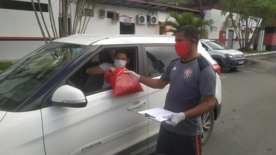 O Vitória começou a distribuir nesta segunda-feira (11) os kits para treinamento online dos atletas de seu elenco. Nesse primeiro momento, a distribuição está sendo feita apenas aos jogadores que estão em Salvador, a entrega é no CT Manoel Pontes Tanajura por funcionários que utilizam máscaras e luvas.