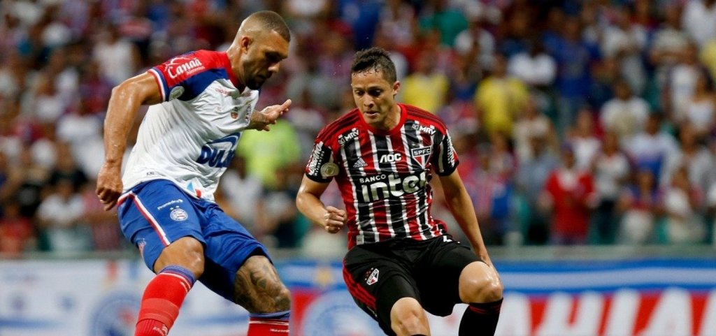 O Bahia não passou de um empate sem gols com o São Paulo na partida de hoje (9), na Arena Fonte Nova, pela 24ª rodada da Série A do Brasileirão. Desfalcado do atacante Gilberto, o tricolor jogou mal e não conseguiu impor a vantagem de jogar em casa. Pressionado pelo time paulista, o Esquadrão chegou a reagir e ameaçar a meta poucas vezes no segundo tempo.