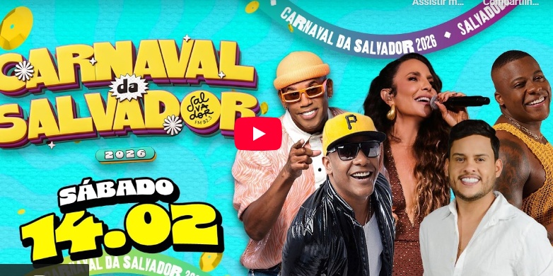 Acompanhe o terceiro dia do Carnaval de Salvador através da transmissão da Salvador FM. Notícias Relacionadas Carnaval 2026Segundo dia oficial do Carnaval registra crescimento na chegada de turistas e ocupação hoteleira em Salvador Os dados indicam aumento no fluxo aéreo e rodoviário, além de uma expressiva elevação na taxa de ocupação da rede hoteleira PrejuízoBruno Reis anuncia barreira da Guarda Municipal para proteger ambulantes após destruição de isopores no Carnaval Medida será adotada para evitar danos a equipamentos e prejuízos aos trabalhadores Assista: Compartilhar essa notícia Assuntos Carnaval Eventos Carnaval de Salvador transmissão salvador fm