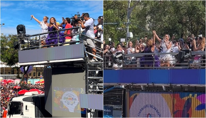 De cima do trio elétrico, as artistas agitaram os foliões no circuito ao cantarem músicas como “Maimbê Dandá” e “Vai buscar Dalila”. O encontro levou o público da pipoca ao delírio.