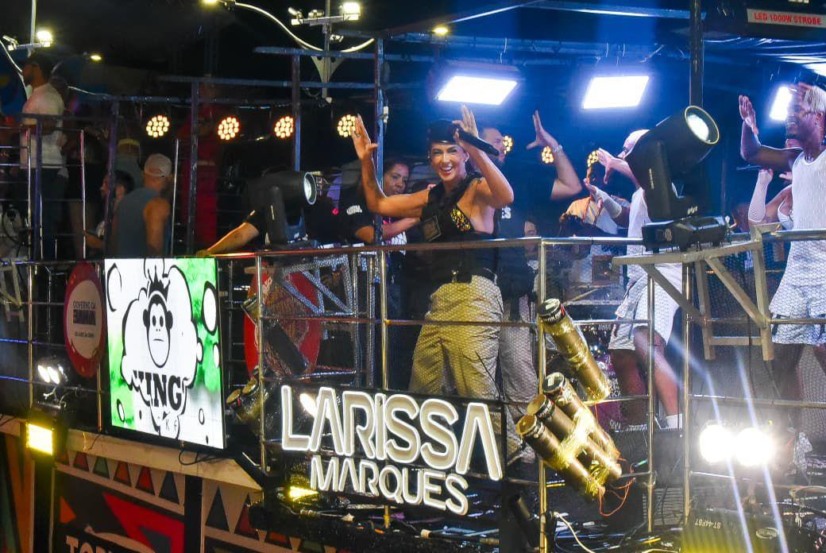 Com figurino inspirado na força da polícia e performance marcada por “Mamãe Que Manda”, Larissa Marques transformou o trio em espaço de reconhecimento e afirmação do protagonismo feminino no circuito do Campo Grande