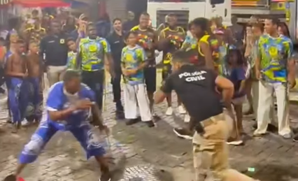 Uma cena inusitada chamou atenção nas redes sociais. Um investigador da Polícia Civil da Bahia, entrou em uma roda de capoeira e mostrou que tem gingado.