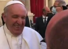 Ao caminhar pelo pátio de San Damaso, o pontífice foi abordado pelo padre João Paulo Souto Victor, de Campina Grande, Pernambuco, que pediu orações para seus conterrâneos: "Santo Padre, reze por nós, brasileiros", disse o padre. Francisco respondeu sorrindo e soltou a piada: "Vocês não têm salvação. É muita cachaça e pouca oração".