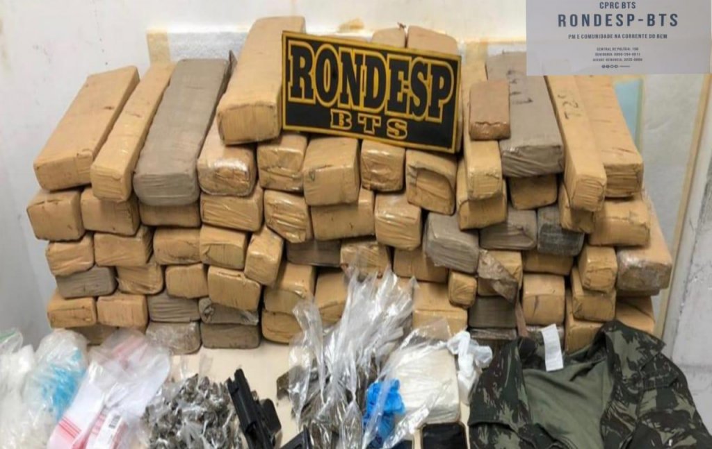 Cem quilos de maconha prensada foram apreendidos pelas Rondas Especiais (Rondesp) Baía de Todos os Santos (BTS), na tarde de quarta-feira (30). Quatro pessoas foram presas em flagrante com entorpecentes e uma pistola.