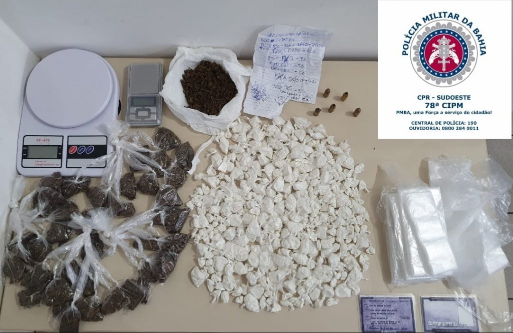 Em continuidade às rondas, as guarnições prenderam, no mesmo bairro, mais um traficante com 50 porções de cocaína e maconha. As ocorrências foram registradas no Distrito Integrado de Segurança Pública (Disep) de Vitória da Conquista.